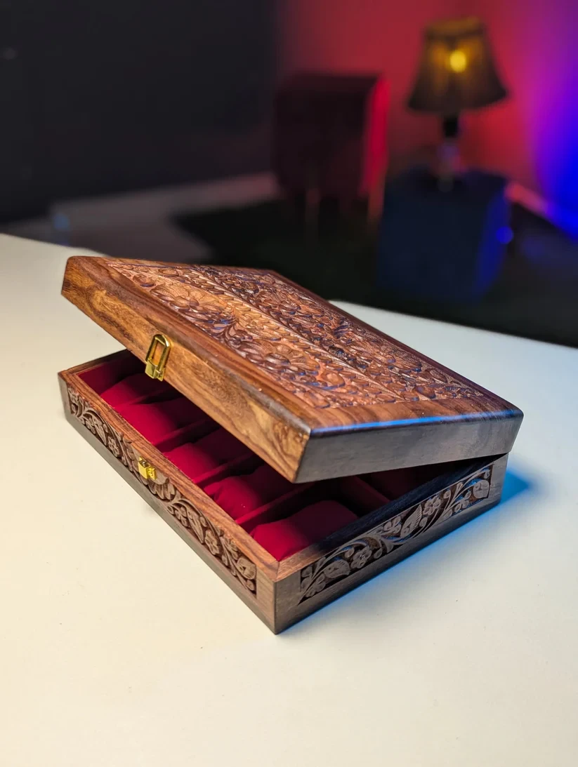 • Carving Art: Intricate hand-carved patterns give the box a distinctive and artistic appeal.