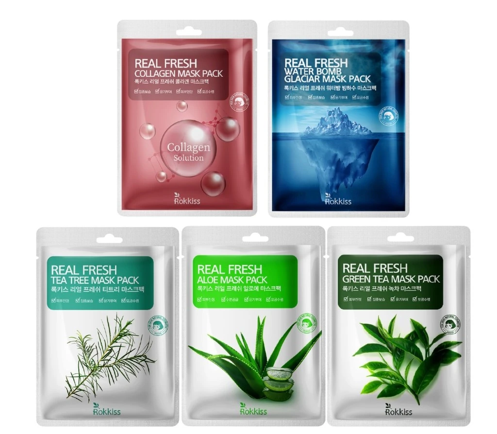 ROKKISS Real Fresh Facial Mask Pack 50EA 5type x 10Sheets Facial K Beauty